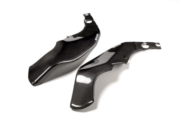 A karbon elemeket kézi laminálással, kiváló minőségű poliészter gyantával készítik átlátszó gélbevonat felhasználásával. Ez a kiváló minőségű géllakk könnyen fényezhető és lehetővé teszi ezen elemek fényes felületének megtartását.
